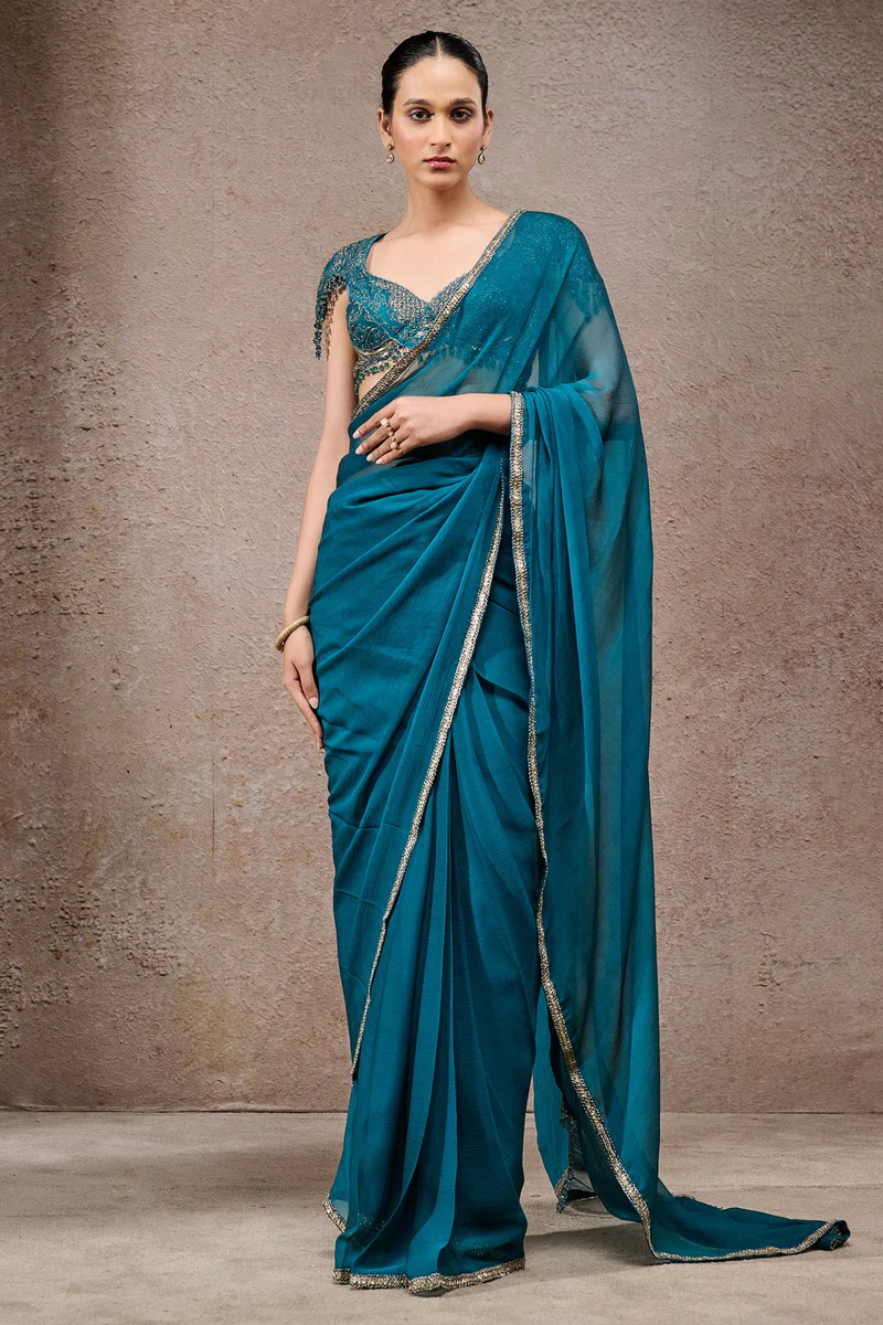 Classic Teal Chiffon Saree