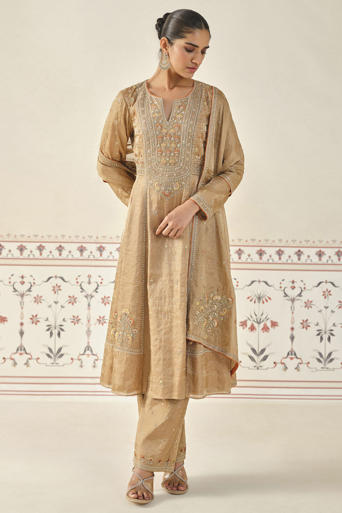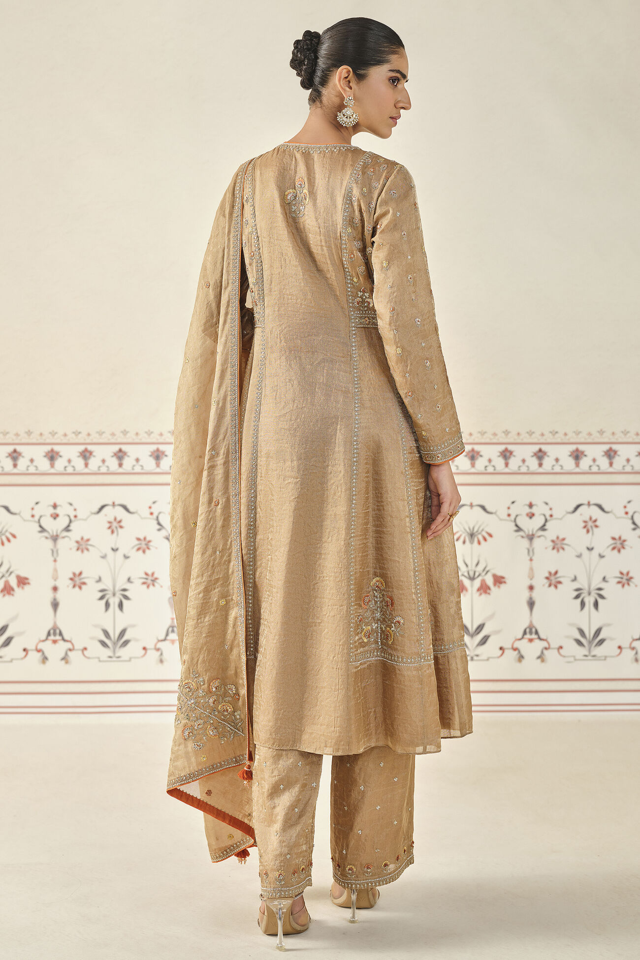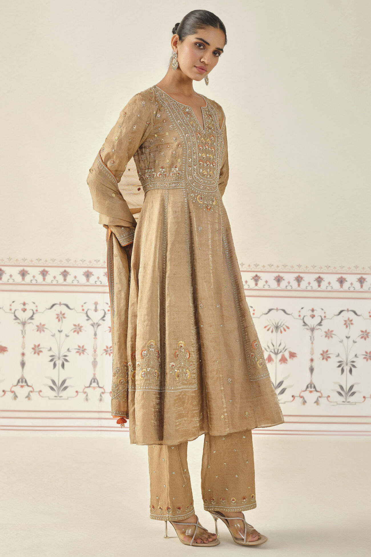 Delicately crafted in luxurious tissue fabric, this exquisite suit set is your perfect companion for the festive season ahead.
