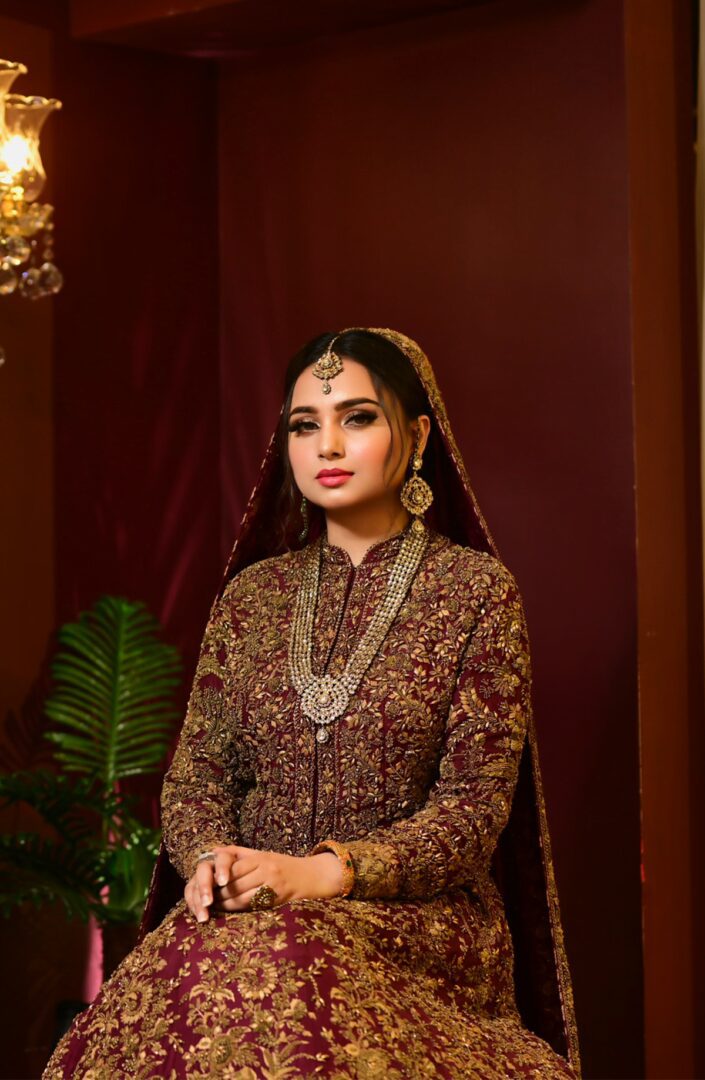 Traditional maroon choli and lehenga crafted from luxurious raw silk, this masterpiece captures the timeless allure of regal fashion. Every inch glimmers with intricate antique gold embellishments, reflecting the artistry and heritage of classic craftsmanship.