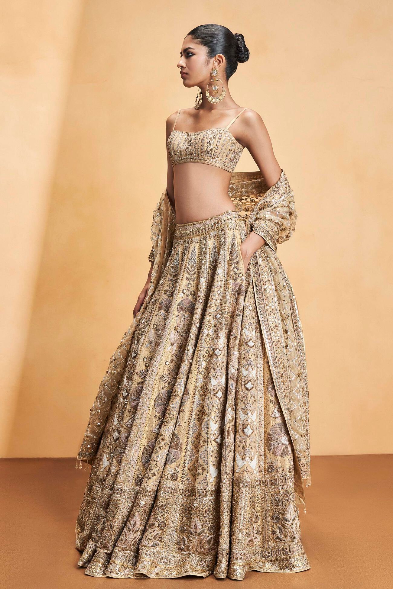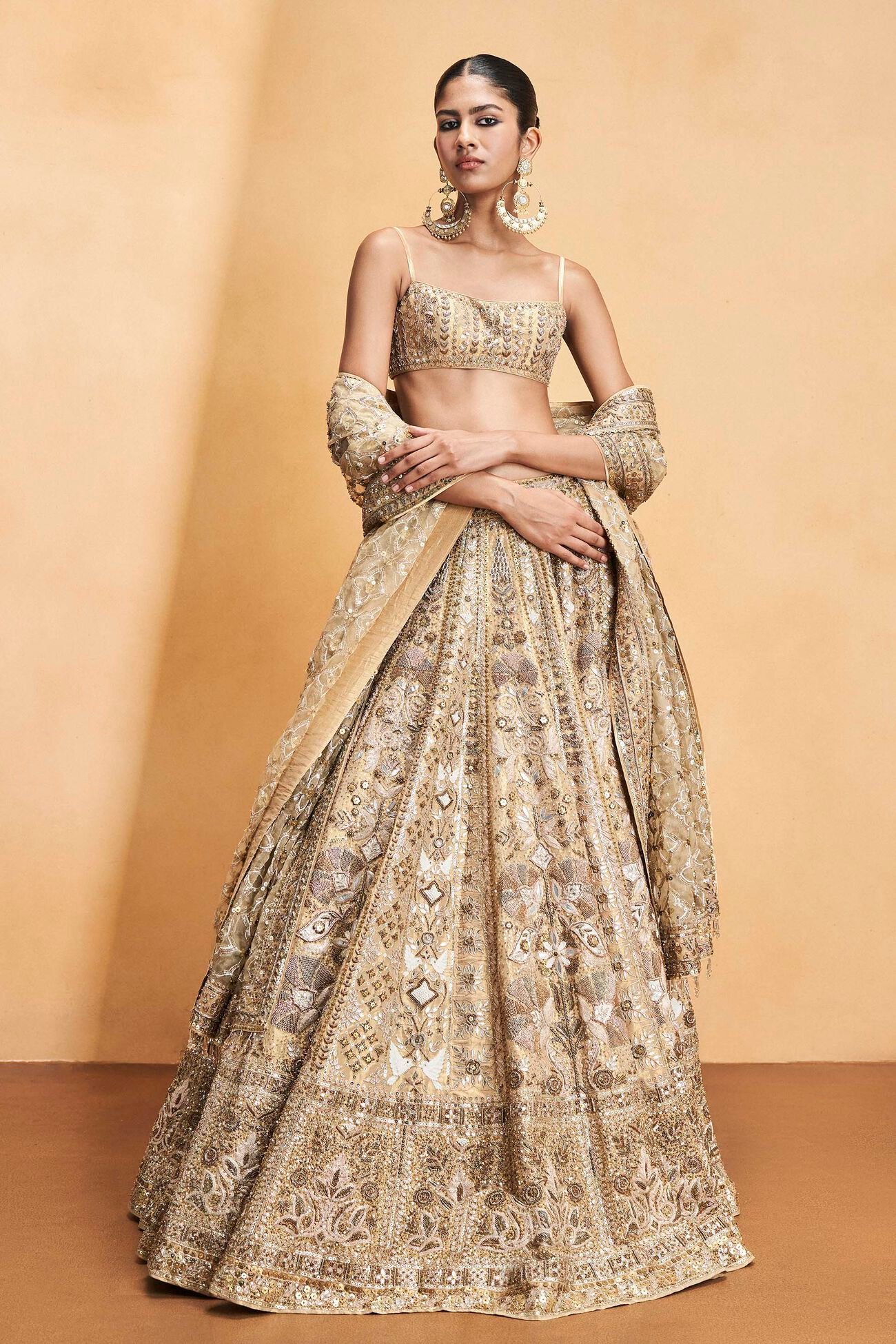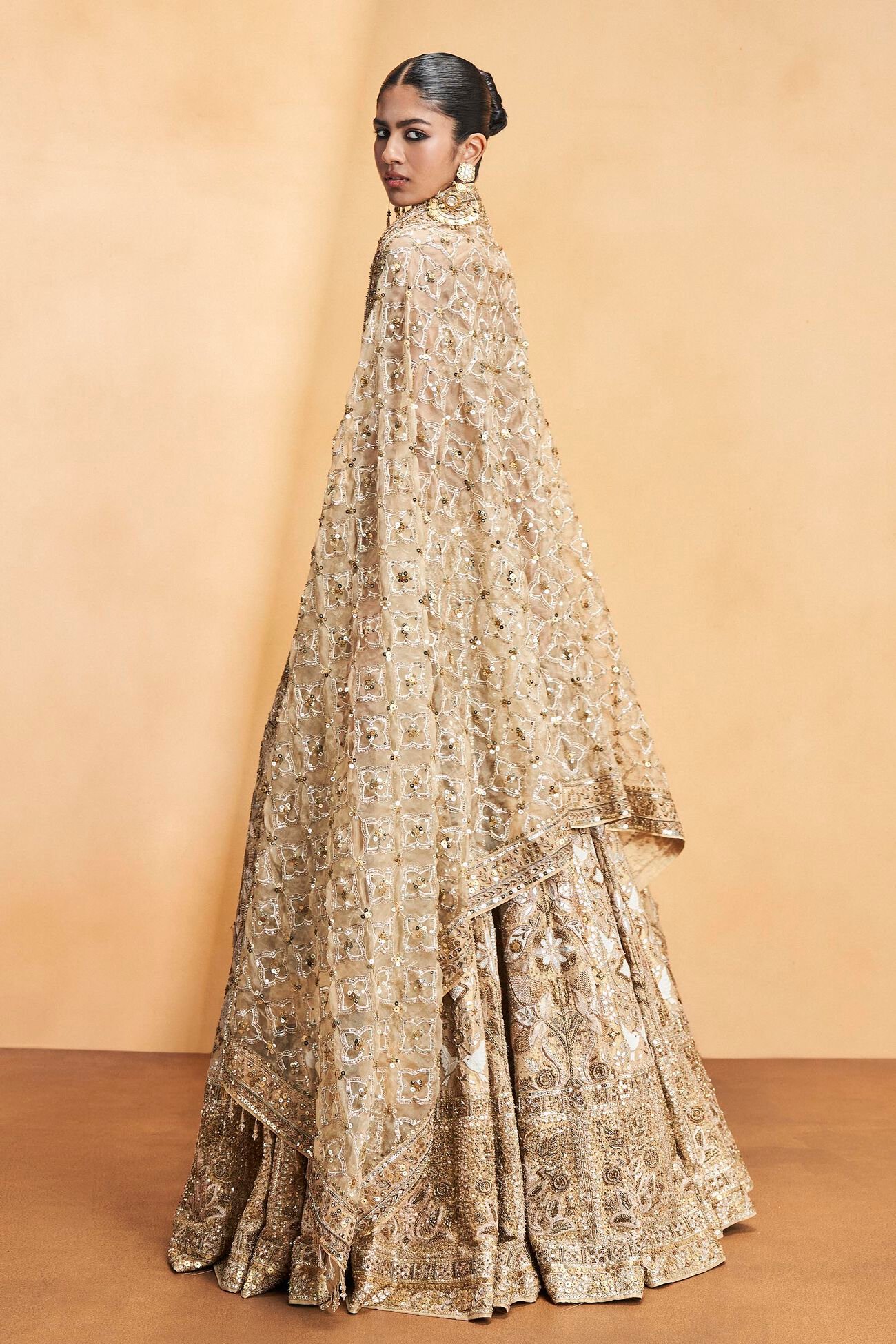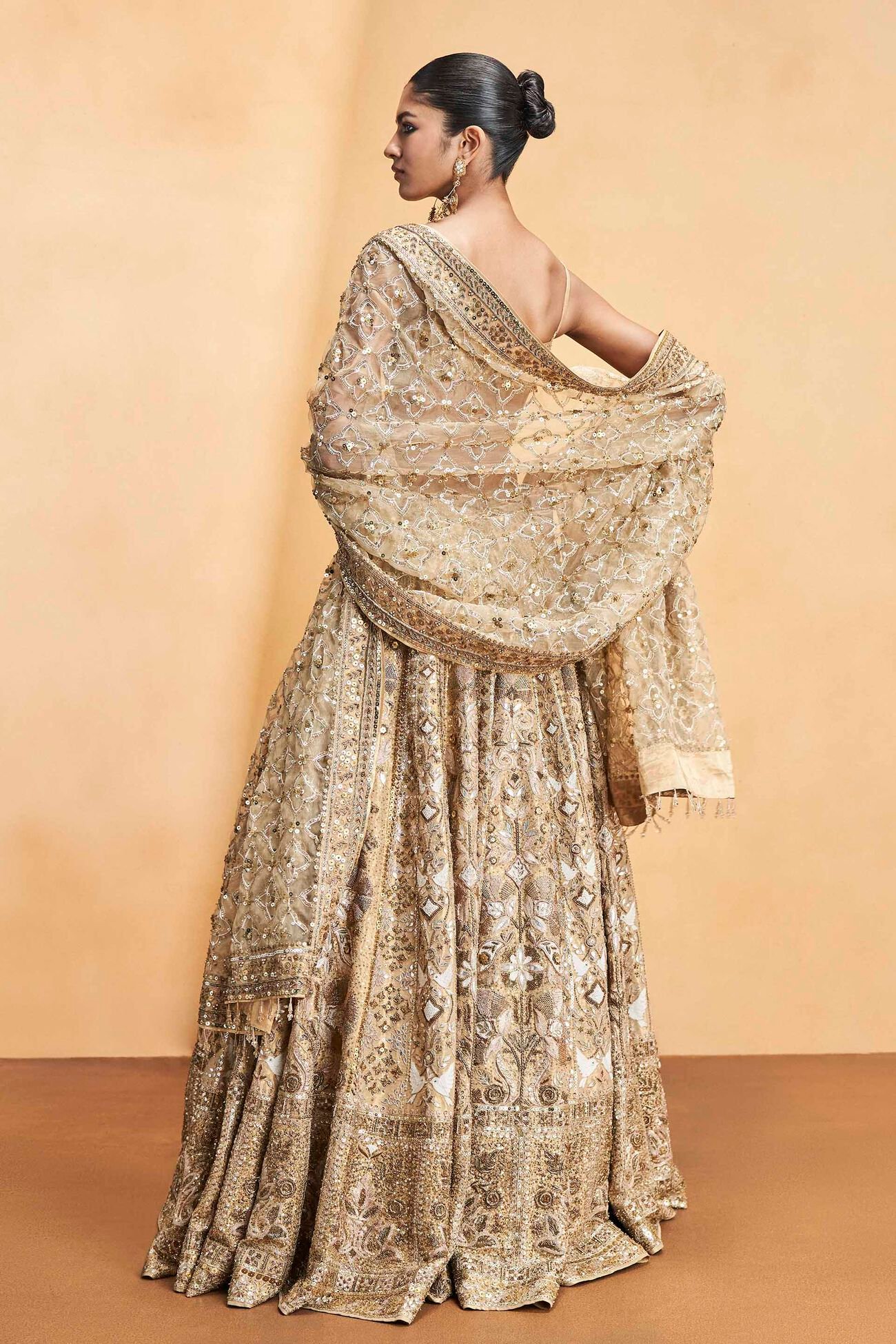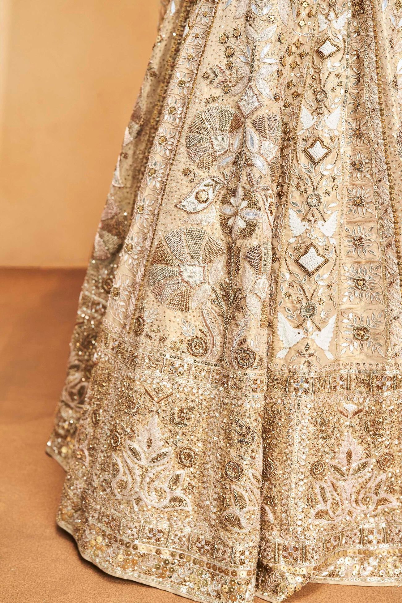 Inspired by the harmonious bond between the flora and fauna of lush, untamed forests, this set is a poetic tribute to nature’s quiet elegance. Intricately adorned with signature gota patti embroidery, each detail is thoughtfully interwoven with the enduring beauty of golden cord work.