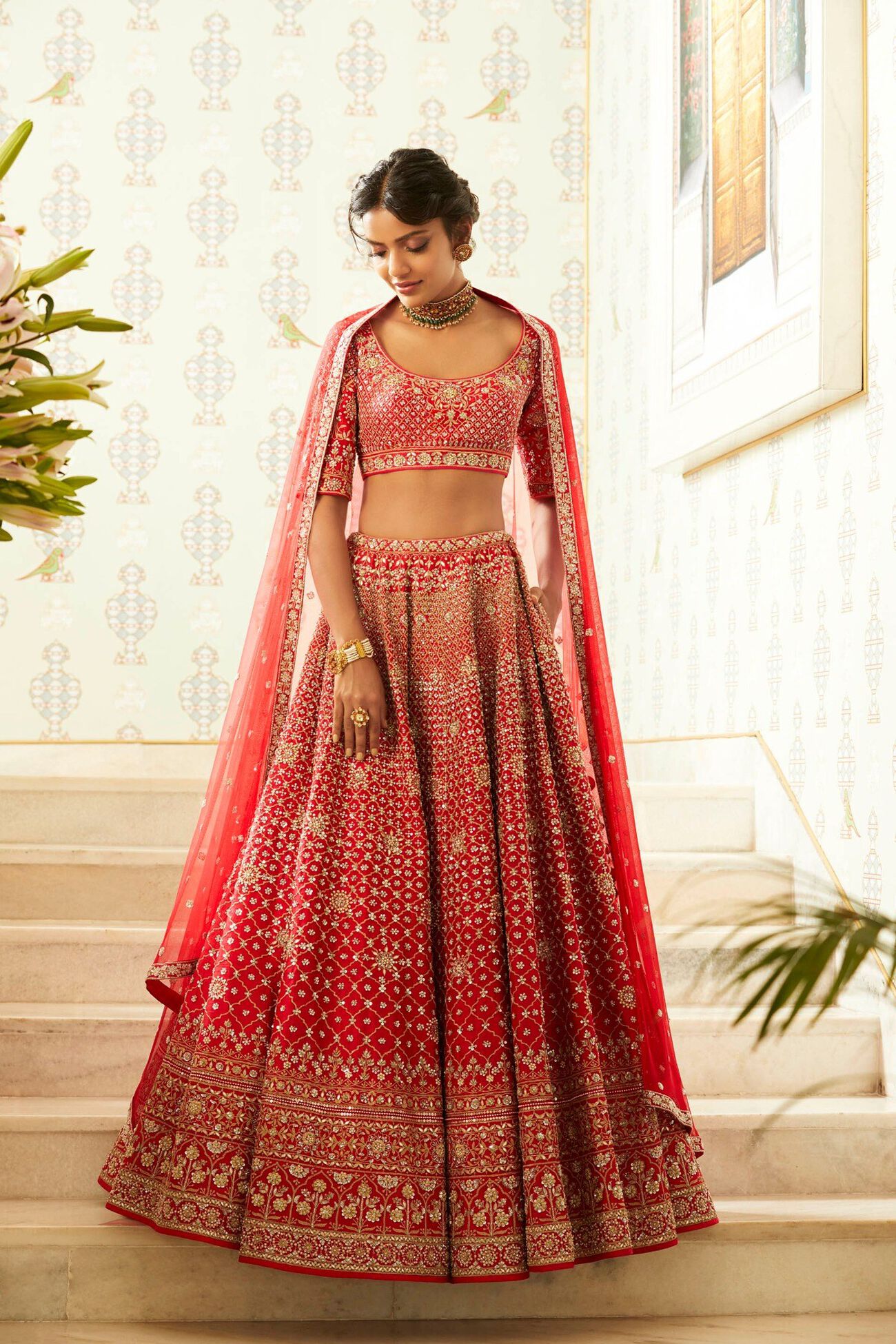 Imagine the first light of dawn catching dewdrops delicately resting on silk—such is the glistening magic of our hand embroideries. Each motif is a tribute to the regal beauty of Rajasthan’s palaces, thoughtfully curated and brought to life with an opulent blend of gota patti, dori, pearls, zardosi, sequins, cut dana, and zari.