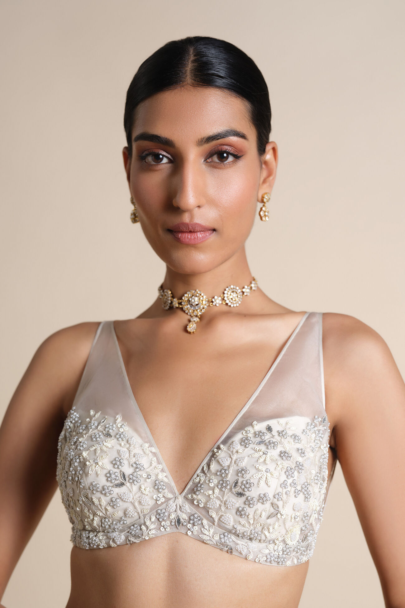 Crafted from the finest silk and inspired by the serenity of pristine waters, this exquisite choli captures timeless elegance with a refreshing modern edge.